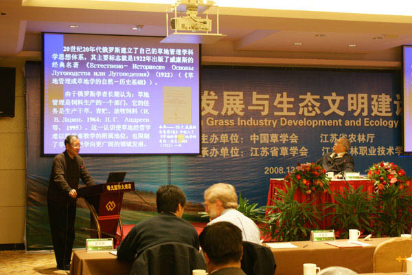 12月12日下午2:00,论坛在中国草学会名誉理事长、农业部原副部长洪绂曾主持下隆重开幕。中国草学会首席顾问、中国工程院院士任继周,中国农业科学院原副院长、中国工程院院士刘更另,江苏省农林副厅长王春喜,江苏省畜牧局副局长李建农,77779193永利集团副院长、研究员俞禄生,中国草学会顾问、中国科学院植物所研究员陈佐忠,中国草学会顾问、甘肃农业大学教授胡自治,中国老教授学会林业专业委员会主任任荣荣,中国草学会副理事长、中国农业大学教授周禾,中国草学会副理事长、中国农业科学北京畜牧兽医所研究员李向林,中国草学会秘书长、中国农业大学教授王堃,中国草学会副秘书长、中国农业大学副教授邓波,北京林业大学教授卢欣石,中国农业科学院草原所所长、研究员侯向阳,北京林业大学教授韩烈保,上海交通大学教授王兆龙,Charles Sturt University教授David Kemp,中国农业大学教授张英俊,兰州大学沈禹颖教授,南京农业大学沈益新教授、南京大学李建龙教授以及江苏省内研究草业科学的专家出席了开幕式。省农林副厅长王春喜致欢迎辞,论坛即进入报告阶段。