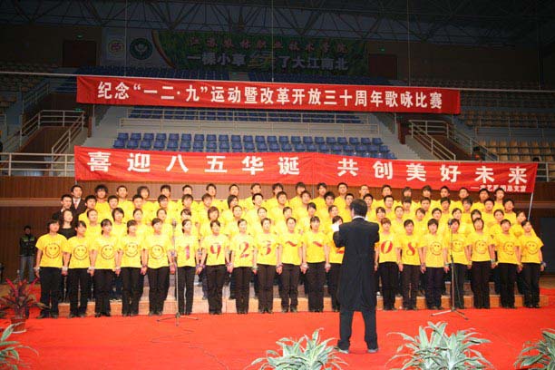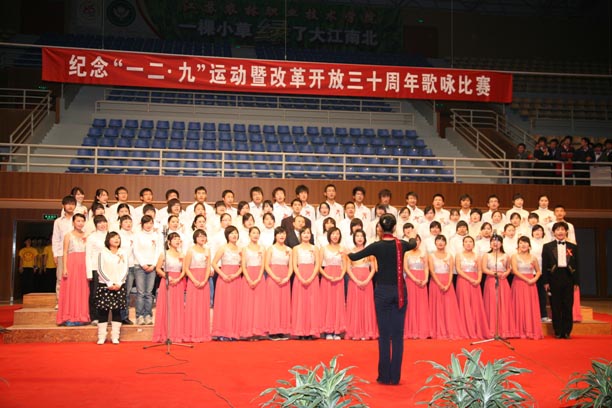今年是“一二·九”运动73周年和改革开放三十周年,为了激发广大师生的爱国情感和集体荣誉感,永利官网团委于2008年12月7日晚,在学院体育馆隆重举行“颂改革、爱国、爱校园”为主题的大合唱比赛。