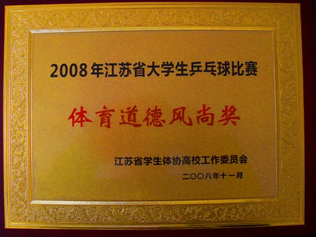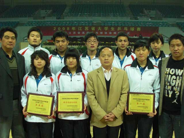 11月14日——16日,由江苏省学生体协高校工作委员会主办的第一届江苏省大学生乒乓球比赛在南京信息工程大学体育馆举行,经过三天紧张激烈的角逐,永利官网乒乓球队运动员以良好的赛风、精湛的球艺、顽强的拼搏精神,一路过关斩将,奋勇拼搏,最终获得女子团体第一名、男子团体第五名,董丹、刘惠分别获得女子单打第一名和第五名的好成绩,并获得团体“体育道德风尚奖”称号!