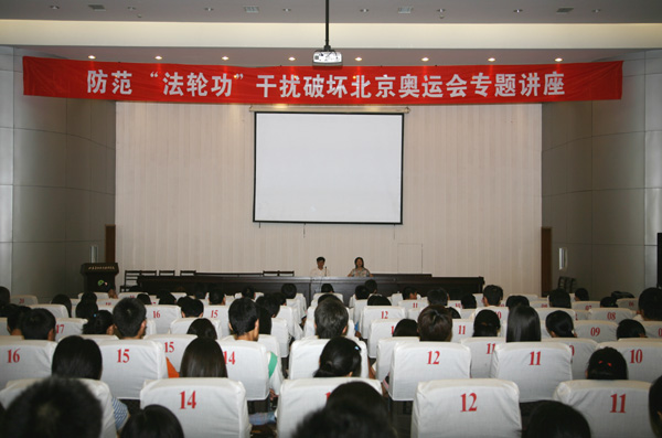 为教育师生进一步增强防范意识,自觉抵制“法轮功”的各种捣乱破坏活动,为成功举办北京奥运会营造良好的社会环境,6月19日下午,永利官网组宣处、两课教研室组织了一次防范“法轮功” 干扰破坏北京奥运会专题讲座。
