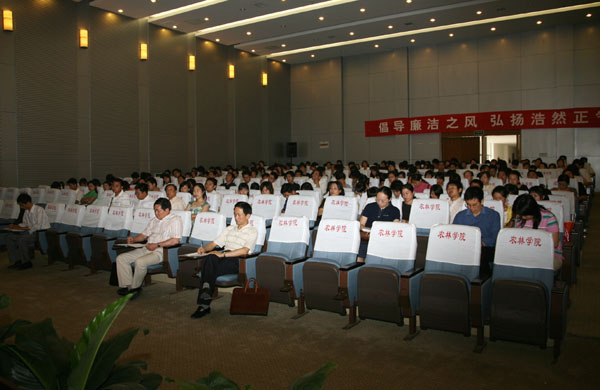 2008年6月4日下午,学院召开党风廉政教育主题报告会,全体中层干部、全体党员参会,学院党委王润贤副书记主持会议。江苏省教育厅张亚平主任在报告会上系统地分析了党的十七大报告中关于反腐倡廉的理论和当前党风廉政建设的形势,并对今后抓好反腐败的工作机制、方法措施进行了阐述,同时简要介绍了全球反腐的一些情况。王书记指出,党风廉政教育对永利官网党员干部廉洁从政、党员教师廉洁从教具有很重要的意义,党员干部要加强学习,提高廉洁自律意识和防腐拒变的能力。