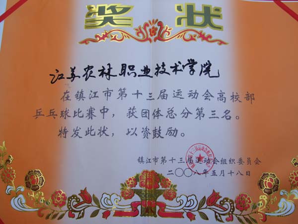 5月18日下午,镇江市第十三届运动会(高校部)乒乓球比赛在江苏科技大学圆满结束。永利官网乒乓球队运动员以良好的赛风、精湛的球艺、顽强的拼搏精神,一路过关斩将,在专科组中勇夺冠军,总排名列镇江市第三名。