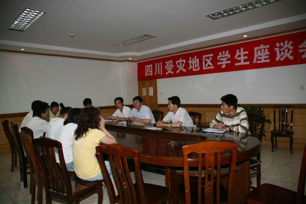2008年5月23日下午4:30,学院团委在综合楼707会议室召开了“心手相牵,你我同行”四川受灾地区学生座谈会,向受灾地区同学表示了慰问和关怀。学院党委副书记王润贤,学工处处长、团委书记毕德全出席本次会议,四川受灾地区学生代表参加了座谈会,会议由院团委副书记梁凯主持。