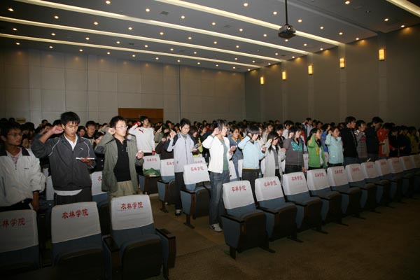 4月16日中午,由院团委组织的“微笑句容·志愿农运·共创和谐青年志愿者招募活动”在学生食堂前举行;下午3:40,“喜迎农运动会倒计时30天暨学生迎农运·讲文明·树新风”誓师大会在北校区报告厅隆重举行,学院青年志愿者、农运会礼仪服务人员、群众演员等300多人出席誓师大会,学院党委王润贤副书记作了热情洋溢的动员,团委、学生会联合发出了“迎农运·讲文明·树新风”的倡议并庄严宣誓;誓师大会后,王书记一行前往体育馆看望并慰问了为农运会作出贡献的建设者,同时,在篮球场举行了“激情·为农运而动”趣味农运项目比赛。