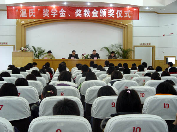 12月16日,畜牧兽医系“温氏奖学金、奖教金”颁奖仪式在永利官网九楼会议室隆重举行。学院尹汉学院长对温氏集团镇江分公司的叶灼荧总经理及陈朝富主任的到来表示热烈欢迎。叶灼荧经理向我系师生介绍了温氏集团的发展及现状,并感谢我校为公司培养了众多优秀人才。尹汉学院长及叶灼荧经理亲自为获奖教师及获奖同学颁发奖学金及证书,获奖教师徐孝宙及获奖学生姜浩发言,对温氏集团领导表达了诚挚的谢意。学生工作处苏小冬处长主持会议。