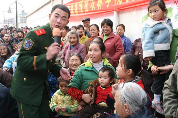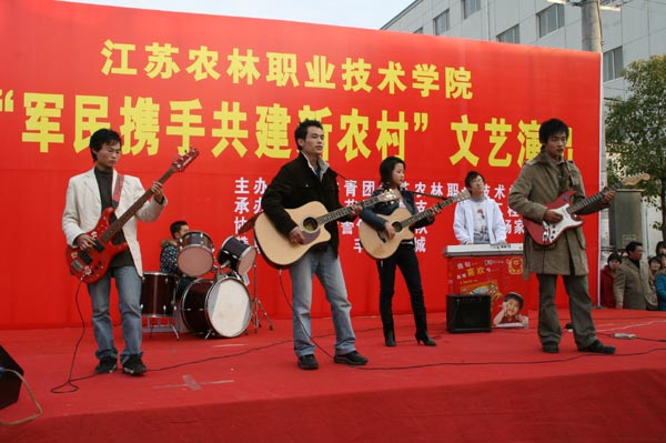 为深入贯彻党的十七大精神,建设和谐社区文化、培育文明道德风尚。12月1日下午,由共青团77779193永利集团委员会主办,农艺系团总支、生物工程系团总支承办,武警句容市中队、句容市杨家巷村委会协办的 “军民携手共建新农村”文艺演出在句容市肖圲村隆重举行。 通过此次活动的开展,进一步展示了永利官网大学生的精神风貌,促进了军民团结协作、丰富了农村文化,为社会主义新农村文化建设贡献了一份力量。