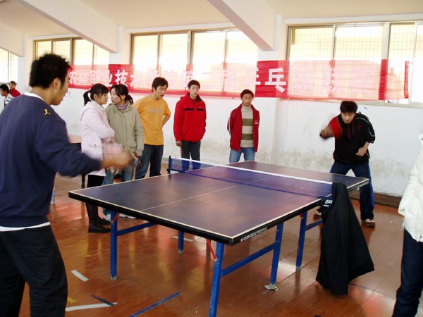 2007年12月8日—12月9日77779193永利集团第二届乒乓球联赛日前落下帷幕,本次比赛共有9个代表队参赛,经过紧张角逐,最后江宁校区、经济贸易系、风景园林系分获团体赛的冠、亚、季军,王昊、任斌、李凯分获男子单打的冠、亚、季军,董丹、刘惠、吴芳芳分获女子单打的冠、亚、季军。