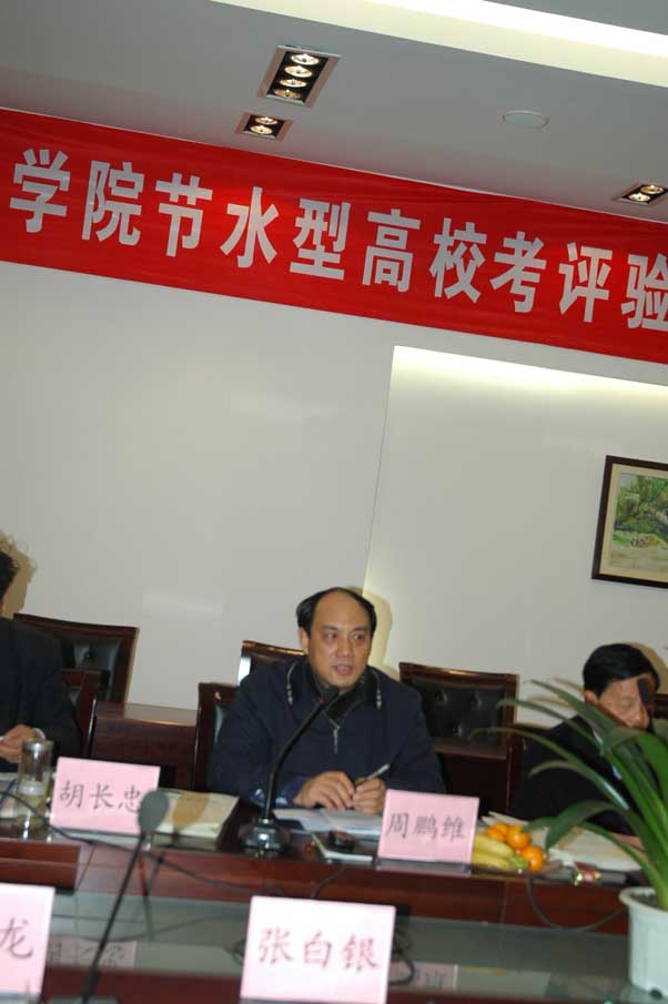 2007年11月19日,学院“节水型高校”考评验收会在学院图书馆中层干部会议室召开,省教育厅发展规划处周鹏维处长、省水利厅水资源处(节水办)胡长忠调研员等 6名专家、镇江市节水办、句容市水利局领导、学院节水领导小组成员等参加了会议。