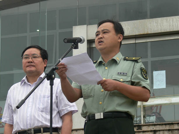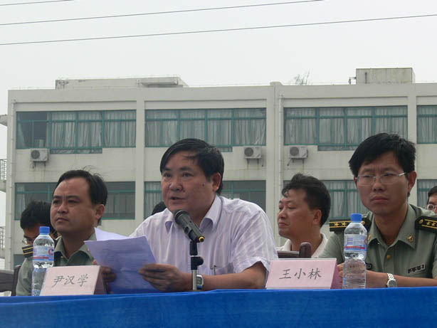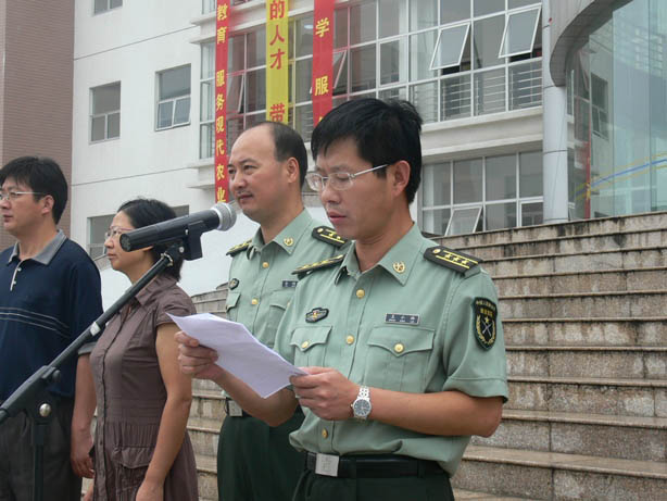 9月18日上午8:30,永利官网句容校区2007级新生开学典礼暨军训动员大会在北校区图书楼前冒雨举行,学院尹汉学院长、李振陆副院长、王润贤副书记,句容市人武部政工科尤红光、承训部队73667王小林副司令、军训团团长余国良等到会并发言,王润贤副书记主持大会。
