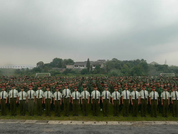 江宁校区2007级新生与教官冒雨参加军训动员大会
