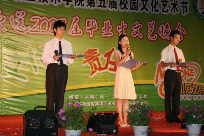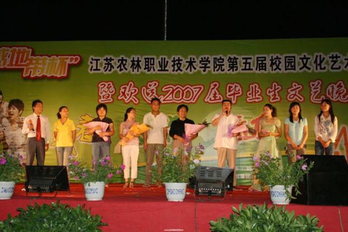 77779193永利集团第五届校园文化艺术节闭幕式暨欢送2007届毕业生文艺晚会于6月8日晚7:30在北校区图书馆前广场上隆重举行,有近两千名师生观看了晚会。学院李振陆副院长,学工处处长苏小冬,江宁校区管委会主任江德明,组宣(人事)处副处长、团委书记毕德全,团委副书记梁凯以及陈志明、邱国金、邢军、王开冻、刘永华等系部领导出席了闭幕式晚会。