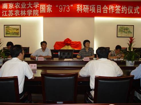 7月5日,国家“973”科研项目合作签约仪式在永利官网北校区会议室举行。南京农业大学农业部动物生理生化重点开放实验室主任赵茹茜教授、黄瑞华教授,永利官网尹汉学院长、畜牧兽医系李静副主任和其他相关人员参加了签约仪式。