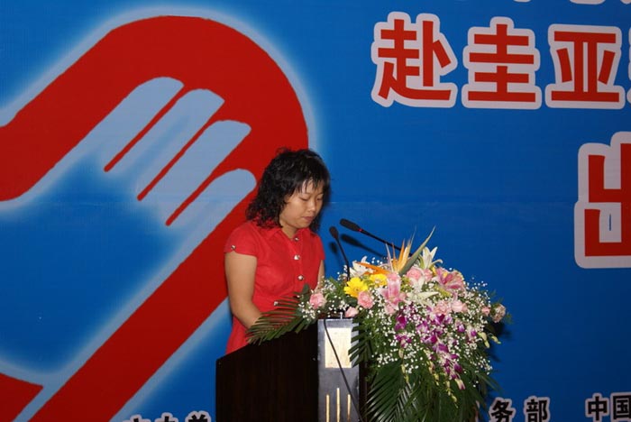 刘庆新爱人王丽群代表援外青年志愿者家属发言