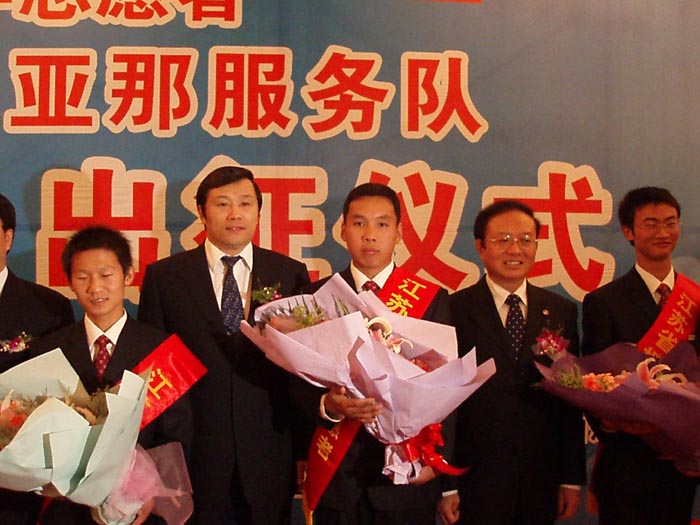 出征仪式后,江苏省委书记李源潮,以及卢雍政、魏建国、王国生、孙志军、李云峰、张九汉等领导亲切接见了中国青年志愿者赴圭亚那服务队的全体队员。