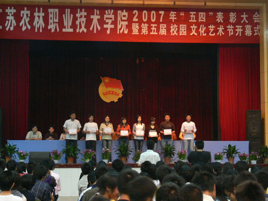 4月27日晚7:00,共青团77779193永利集团委员会2006——2007年度“五四”表彰大会暨第五届校园文化艺术节开幕式在学院体育馆隆重举行。学院党委副书记王润贤,组织宣教处副处长、团委书记毕德全,以及各系团总支书记出席了会议。