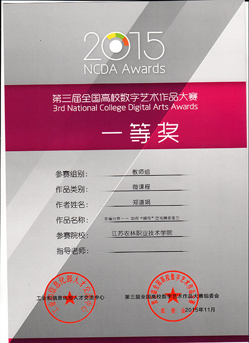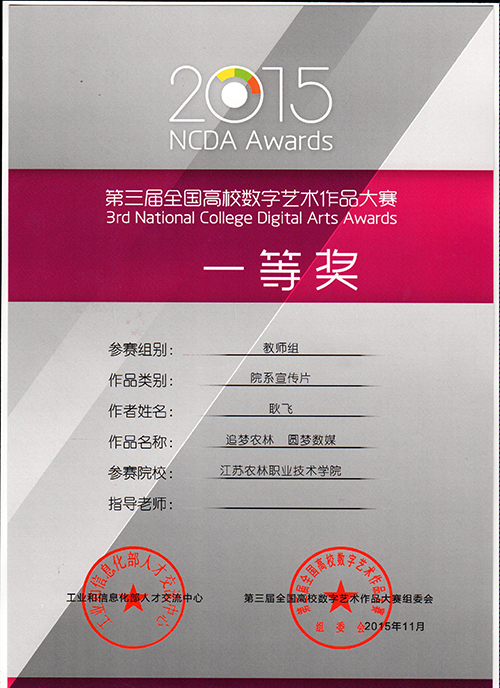 11月28日,第三届全国高校数字艺术作品大赛颁奖典礼在上海城市规划馆隆重举行。永利官网信息工程系数字媒体艺术教学团队师生共提交作品26件(组),其中教师组获一等奖2项、二等奖4项、三等奖1项,学生组获二等奖1项、三等奖1项。永利官网被授予“优秀组织奖”。 本次比赛由工业和信息化部人才交流中心主办,教育部全国高校学术信息咨询与就业指导中心、全国高职高专校长联席会议支持,从作品征集、作品评选历时6个月,共有273所院校提交5512件(组)作品。