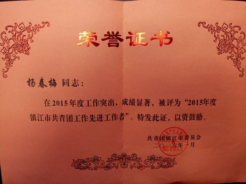 近日,共青团镇江市第十六届委员会第五次全体(扩大)会议在镇江召开。会上对2015年度全市共青团工作中成绩突出的集体和个人进行了表彰。 永利官网团委副书记杨春梅老师荣获2015年度“镇江市共青团工作先进工作者”荣誉称号,信息工程系张媛老师被评为“2015年度‘我们身边的好团干’”。此外,由院团委申报的“第二课堂——构建团员自主管理平台”项目,获2015年度“镇江市共青团工作创新创优成果二等奖”。