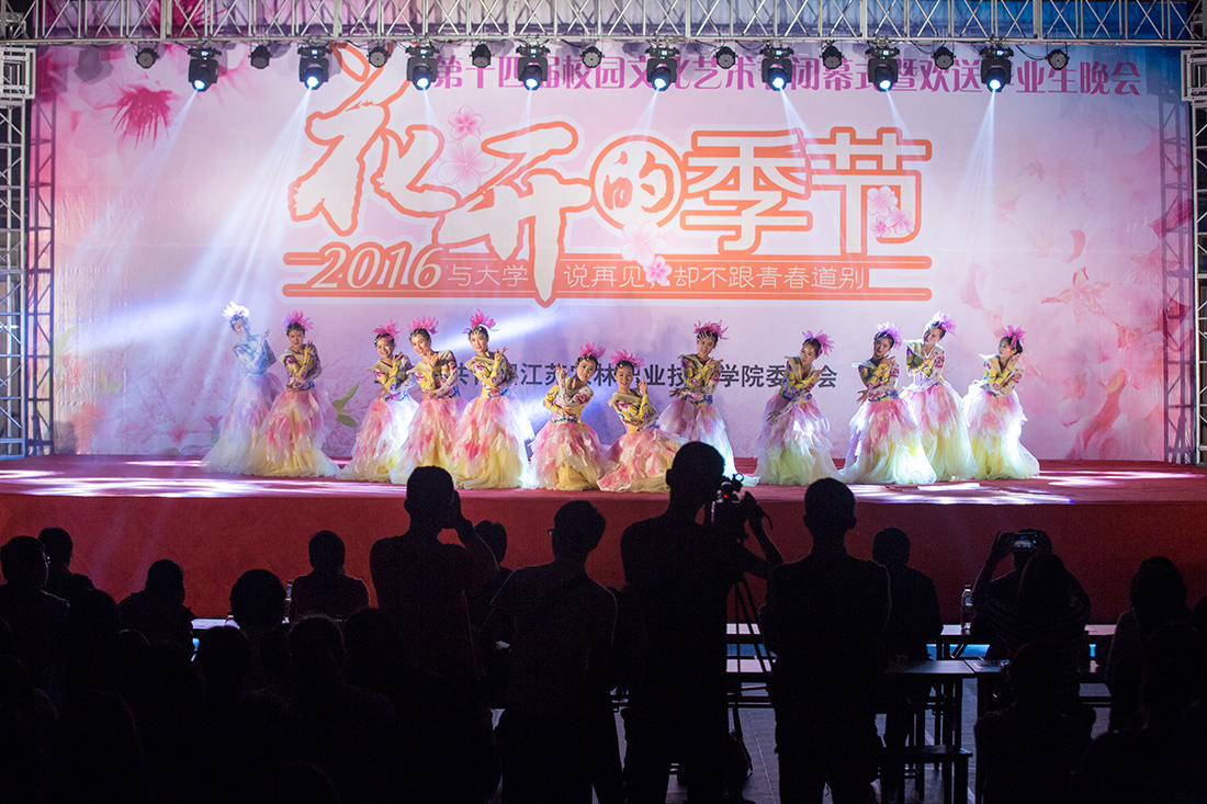 此次晚会以“花开的季节”为主题,寓意“学子学业有成,农林桃李芬芳”。四位毕业生的歌曲联唱深情款款,悠扬的歌声夹杂着离别的伤感,也唱出属于他们的青春年华;《毕业组诗》情真意浓,字字句句是回忆亦是告别;“再见了相互嫌弃的老同学,再见了来不及说出的谢谢”,一曲《不说再见》温暖感伤,道尽同窗友谊;“母校,请您接受我们离别前最后的问候”,小品《青春有你》生动感人,诉说对母校的真挚情感;《新教师醉酒》表达了教师对毕业生的不舍和祝愿;毕业班班主任与毕业生合唱的《屯里的人》和《祝福》唱出了师生的情谊和最美好的祝福;舞蹈《欢乐的火把节》、《纳西姑娘》、《毕业不哭泣》则展现了农林学子的青春风采,在舞蹈《花开的季节》中晚会圆满落下帷幕。