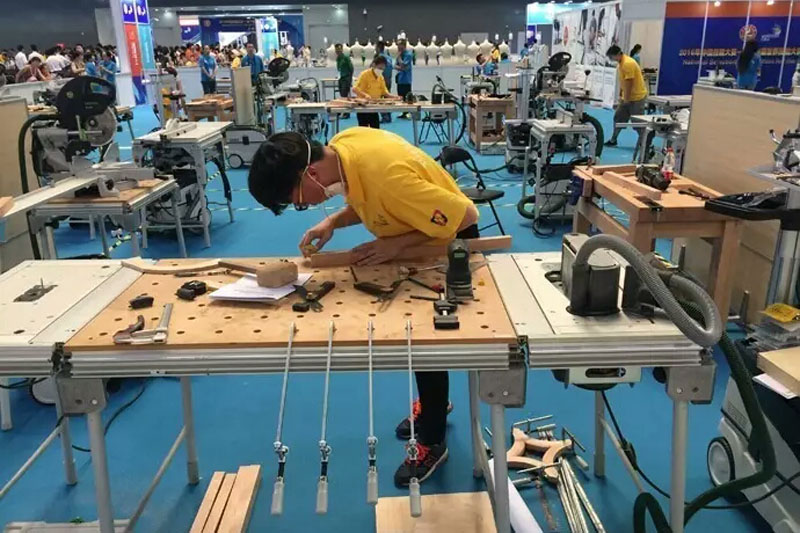 本次大赛由人力资源和社会保障部主办,涉及六大领域共15个竞赛项目,来自全国31个省市的选手同台竞技,争夺2017年在阿联酋阿布扎比举行的第44届世界职业技能大赛入场券。精细木工项目是我国自2011年参加世界技能大赛以来首次参赛的项目,要求选手在现场根据图纸按照要求综合使用细木工机械设备和手工工具,合理选材、正确划线、图纸放样、榫卯加工、拼接加工、表面处理等,制作出符合标准的木制品,竞赛标准和技术规则完全对接世赛要求,代表了该领域国内最高水平。