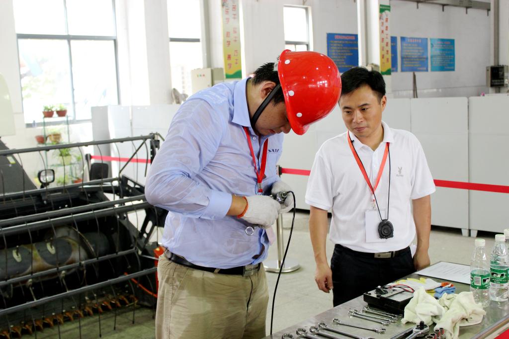 本次比赛项目为联合收割机电路故障、油路故障、液压系统的检查与调整及割台部位的调整,所有故障布置及恢复均由苏欣服务部技术组员工及永利官网专业教师完成。来自苏欣总部代理区域久保田基层网点的8名选手动作规范、娴熟,诊断思路清晰,逐一排除故障,有条不紊地完成各个赛项。