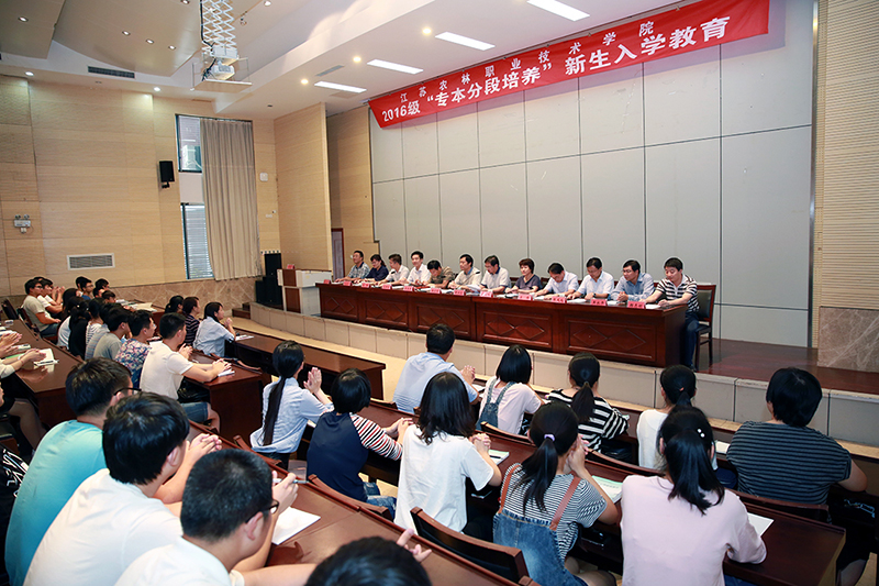 9月27日下午,2016级“专本分段培养”新生入学教育大会在研发楼报告厅举行。学院党委书记俞卫东、副院长周兴元及金陵科技学院动物科学与技术学院院长戴鼎震,南京林业大学教务处副处长高捍东、林学院副院长陈凤毛,扬州大学教务处副处长吴峰、农学院副院长高辉等领导出席大会。大会由周兴元副院长主持。