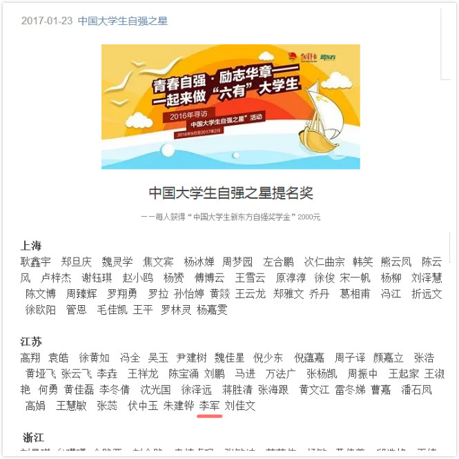 日前,由共青团中央和全国学联主办、中国青年报社和中国高校传媒联盟承办、新东方教育科技集团协办的2016年度寻访“中国大学生自强之星”活动结果揭晓,由永利官网团委推荐的农学园艺系15环境监测与治理技术班李军同学荣获“中国大学生自强之星提名奖”,同时获得“中国大学生新东方自强奖学金”。