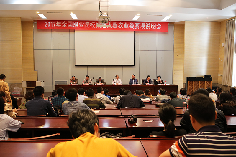 4月19日上午,2017年全国职业院校技能大赛农业类赛项说明会在永利官网研发楼报告厅召开。农业部农民科技教育培训中心处长文承辉、学院副院长简祖平以及来自全国20个省(市)45所院校的代表参加了会议。