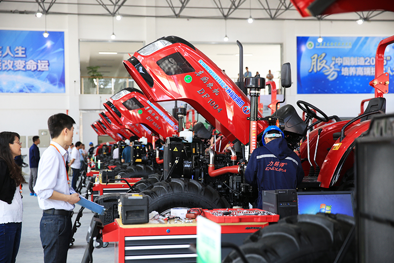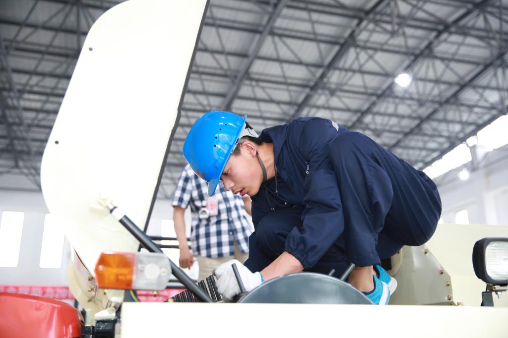 农机维修赛项为大型轮式拖拉机综合故障诊断与排除项目、履带自走式全喂入联合收割机综合故障诊断与排除项目两个部分,竞赛选手须进行全部项目的操作技能考核。比赛现场气氛紧张严肃,选手们细致规范地进行各项操作,陆续在规定时间内进行故障诊断与项目排除。裁判们严格评分、一丝不苟,保证了比赛的公正与顺利进行。