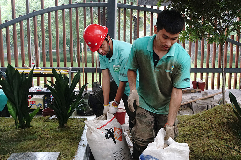 与以往赛项不同的是,本次园林景观设计赛项对接世界技能大赛,增加了园林工程施工部分,选手须按照编制好的计划,参照规划布局和高程式细节以及局部图纸等,使用工具对园林景观进行安装、布置和维护。比赛现场“硝烟四起”,选手们利用手中的工具或挖土、或砌墙,实地创造园林景观。裁判在裁判长的领导和监督下严格评分、一丝不苟,保证了比赛的公正与顺利进行。