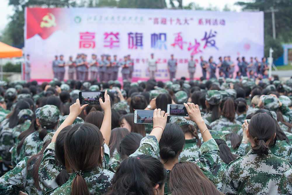 9月27日,“喜迎十九大 高举旗帜再出发”大型红色传统传统教育专题文艺演出暨迎新生晚会在茅山校区篮球场和学院本部体育馆隆重举行。校党委委员、副校长简祖平,工会主席江德明及学院党委宣传部、团委、学生工作处等职能部门负责人、各二级学院负责人与师生及部队承训官兵共同观看了演出。