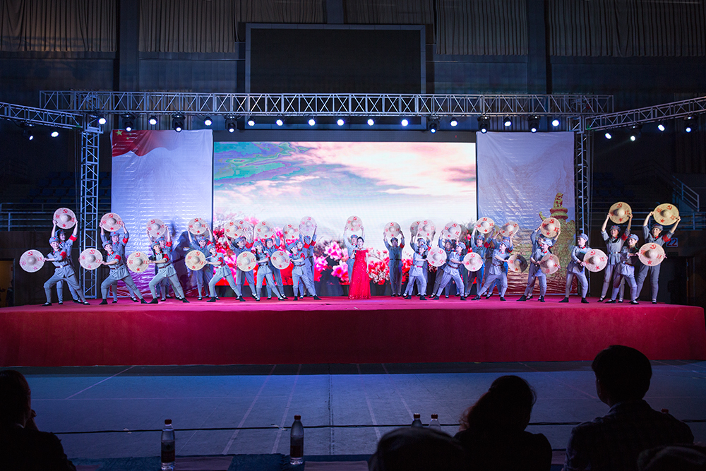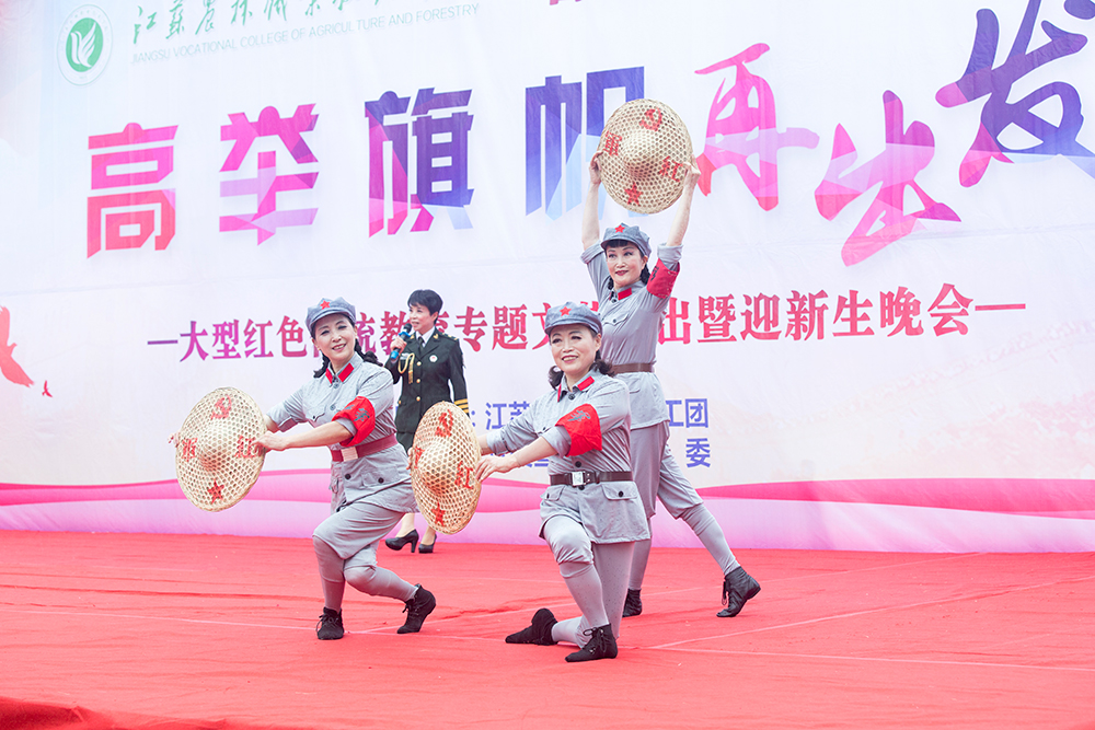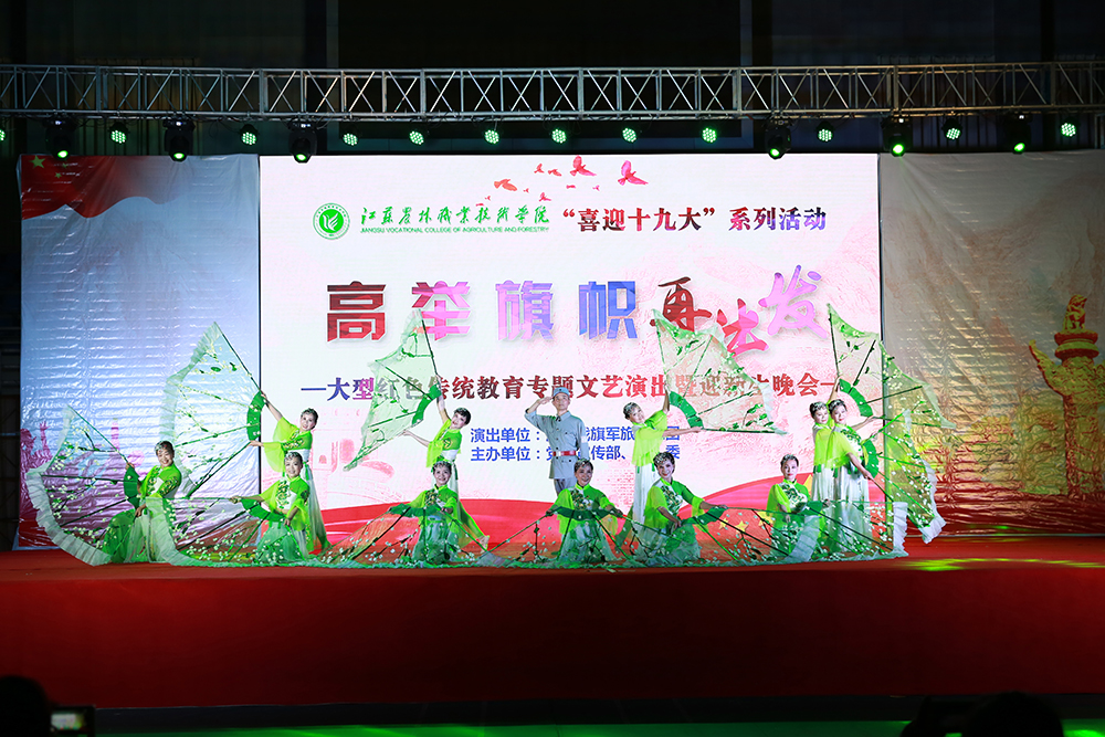 本次演出以“喜迎十九大 高举旗帜再出发”为主题,由党委宣传部和院团委主办,江苏战旗军旅文工团和校大学生艺术团共同演绎。江苏战旗军旅文工团带来的开场歌舞《献给我们共同的事业》传递了对伟大的祖国、伟大的党的美好祝愿;舞台诗句《热血忠魂、生离死别》向观众们展现了共产党人的大无畏精神和革命情操;《过雪山草地》、《映山红》再现长征情景,弘扬长征精神;歌舞表演《红军老妈妈》以一颗红心表达了坚定的爱国情怀;舞蹈《茉莉花与新四军》以轻盈的舞姿反映新四军文艺兵与江苏民歌的渊缘,让师生们在享受艺术的同时受到了精神的洗礼。校大学生艺术团表演的诗朗诵《慢慢变老》感动全场,一段街舞《boombayah》青春洋溢,一曲农林版《成都》唱出了农林的美丽与热情。期间,来自全国24个省份的新生代表也登上舞台表达了对学校的热爱和对祖国的祝福。演出在江苏战旗文旅文工团艺术家们嘹亮激昂的合唱《集合在军旗下》声中,在全场师生的热烈掌声中落下帷幕。