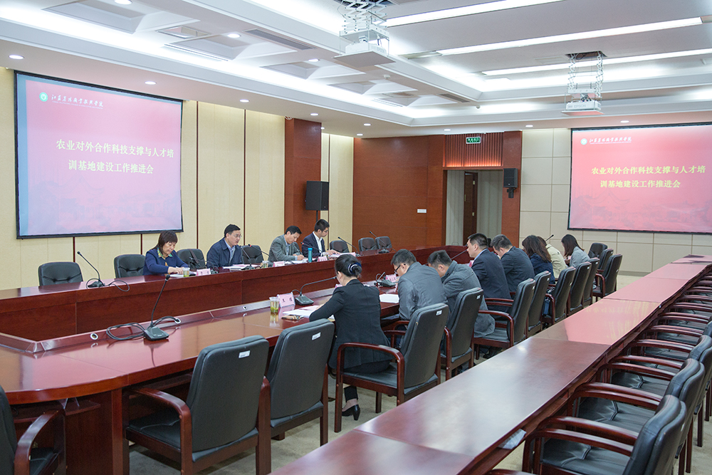 10月12日上午,农业对外合作科技支撑与人才培训基地建设工作推进会在我校综合楼九楼会议室举行。江苏省农业委员会外事外经办公室主任李旭、副主任田玉斌,学校副校长贾君及农业对外合作科技支撑与人才培训基地江苏联合体各单位相关负责同志出席了会议。
