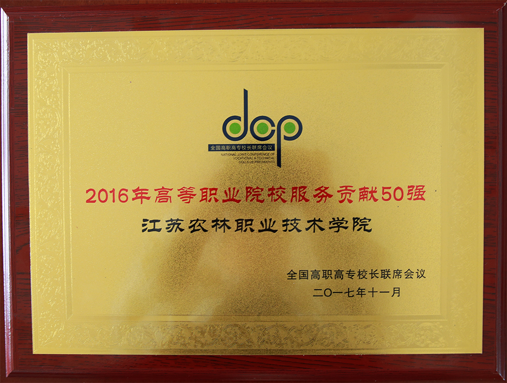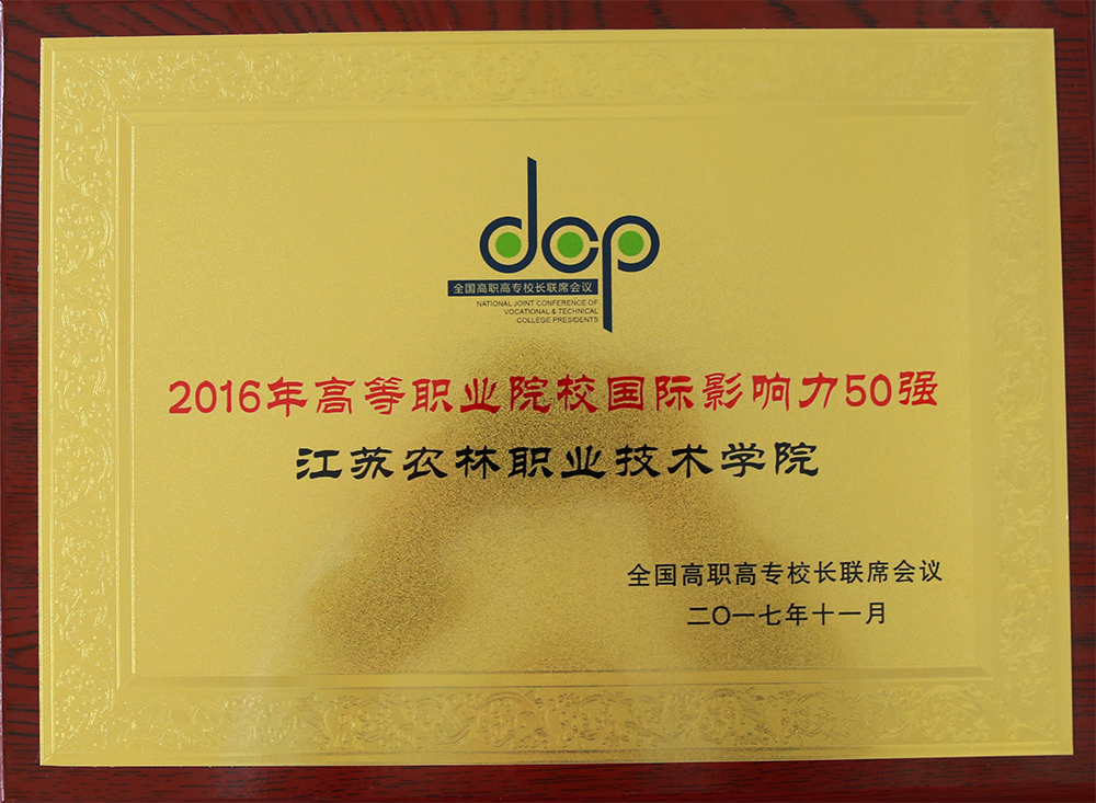 11月11日至12日,全国高职高专校长联席会议2017年年会在江苏常州召开。会议向2017年办学成效卓越的院校颁奖,我校获颁“高等职业院校服务贡献50强”和“高等职业院校国际影响力50强”两项荣誉。