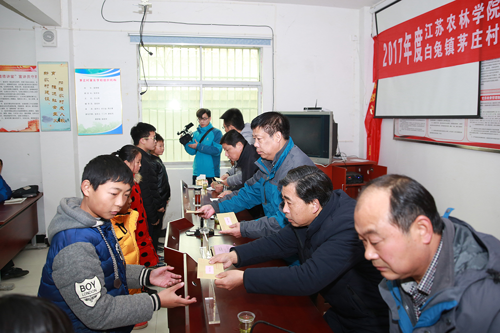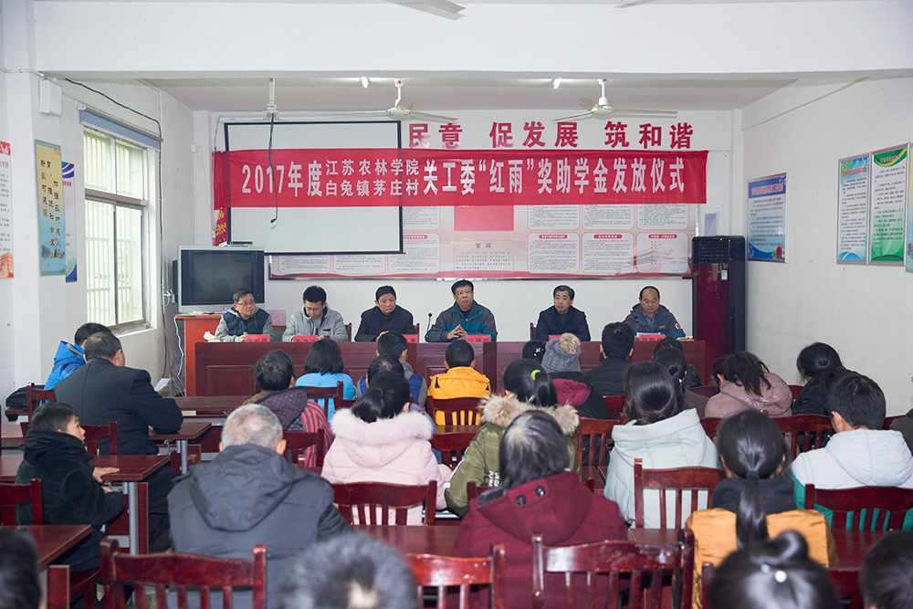 12月16日,我校关工委携手句容市关工委、白兔镇党委政府和茅庄村党总支、村委会,按照镇江市关工委、老区开发促进会和总工会组织实施的驻镇高校第十七次“百名教授老区行”活动的精神,组织了40名老同志、在职教师和大学生志愿者冒着严寒赴茅庄村开展了“送科技、送文化、送温暖”活动,分种植业、养殖业、法律咨询、义诊、写春联等五个项目服务当地群众,并为茅庄村优秀学生和贫困家庭学子颁发了“红雨”奖助学金,大学生艺术团演员为老区父老乡亲献上了精彩演出。活动受到了当地干部群众的热烈欢迎和有关部门的充分肯定。