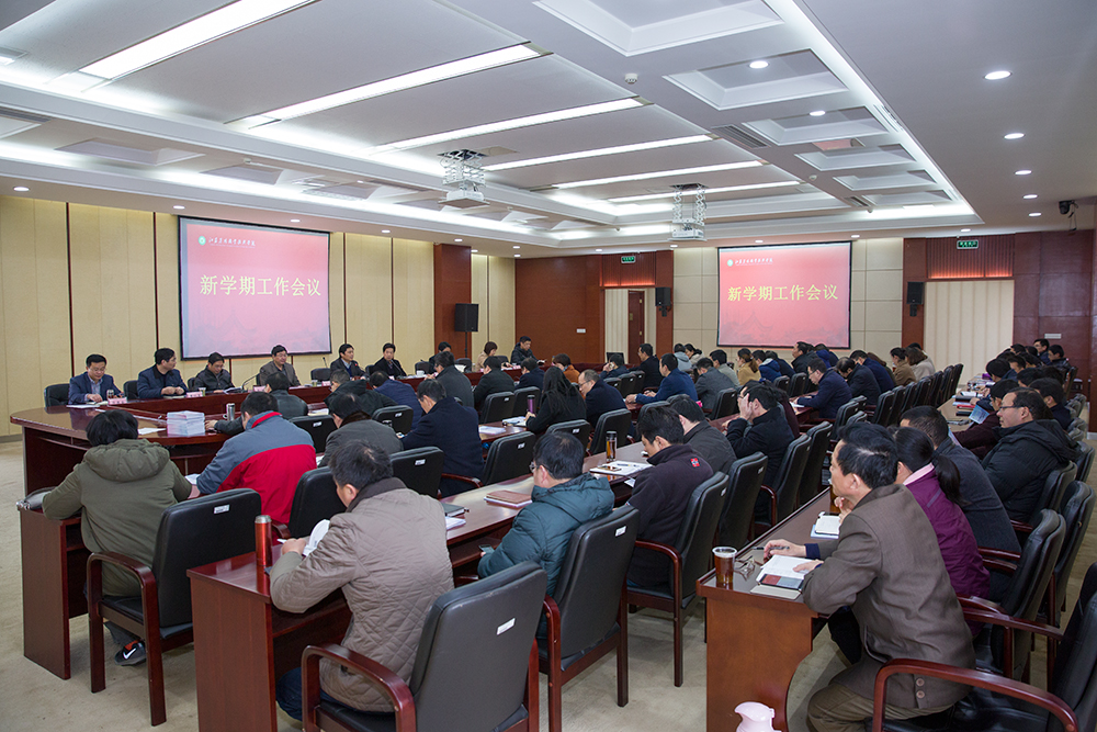 3月1日上午,新学期开学第一天,学院在综合楼九楼会议室召开中层干部大会,传达2018年全省教育工作会议精神,部署学院2018年度党政工作。全体院领导、中层干部参加会议。会议由党委书记俞卫东主持。