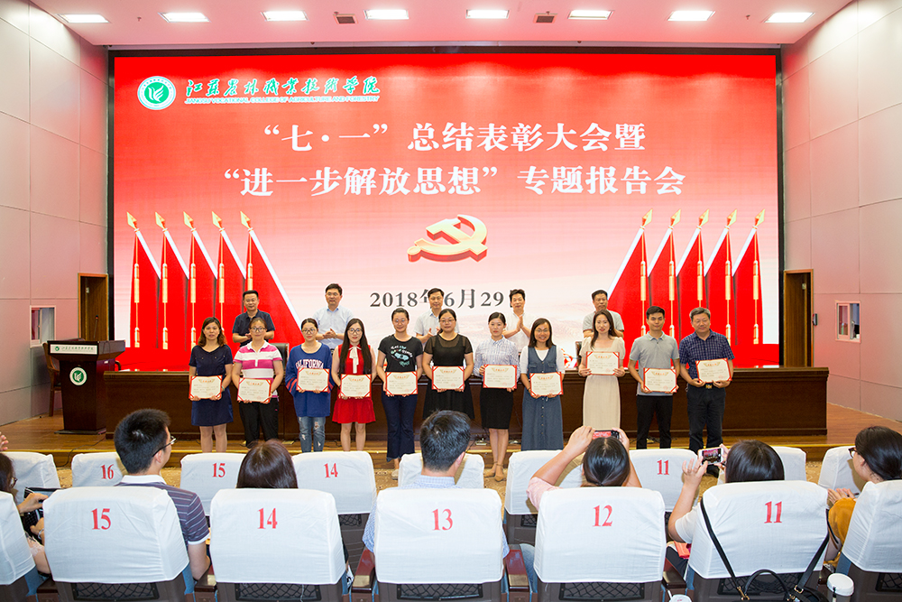 6月29日下午,“七一”总结表彰大会暨“进一步解放思想”专题报告会在图书馆报告厅召开,学院党委班子成员及全体师生党员400余人参加了大会。大会由学院党委副书记、院长巫建华同志主持。
