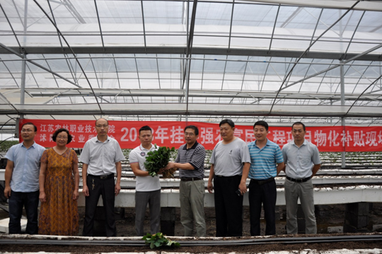 会后,周兴元副院长察看了茆圩乡草莓示范基地、潼阳镇蔬菜示范基地的实施情况,并代表学校在茆圩乡草莓示范基地发放了草莓种苗物化补贴。为快速提升沭阳县草莓产业质量,沭阳县专家组把学院的脱毒草莓繁苗、省力化高效栽培等核心技术在茆圩草莓基地进行示范推广,2018年在茆圩乡草莓基地物化原种苗20亩,生产苗5万株,有效推进了沭阳县草莓新品种、新技术应用。目前12000平方米高架草莓、5000亩日光温室草莓正在有序定植。