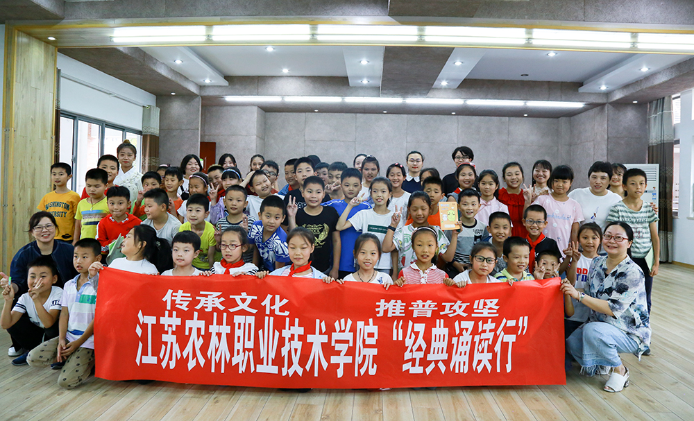 9月13日下午,为了使普通话推广更好地发挥高校服务地方功能,校语委办教师带领学院文秘专业“诵读小分队”一行十五人来到句容华阳实验小学,开展“经典诵读行”活动。从《三字经》《游子吟》《咏柳》到《荷塘月色》《面朝大海,春暖花开》《相信未来》,从古典诗词到当代名篇,从经典诵读到互动游戏,小学生们积极参与、热情高涨,现场气氛热烈而欢畅。这次活动让学生们充分领略到诵读经典的魅力,明白了学习普通话的重要意义。