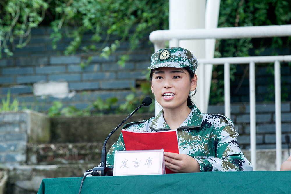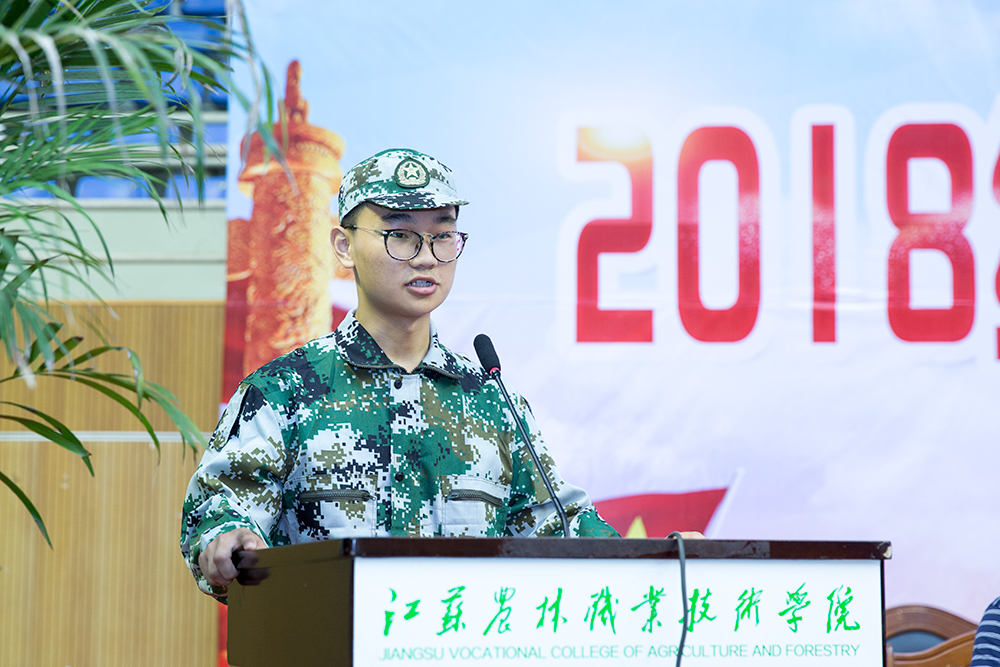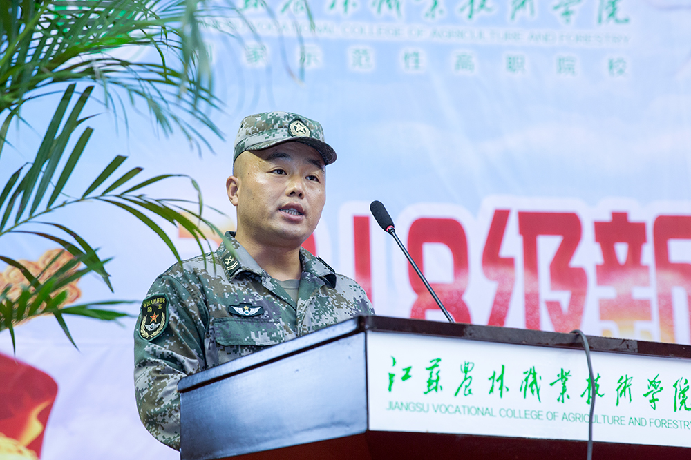 军训教官代表李铁柱、张明,教师代表陈军老师,新生代表万立鹏、刘远远,留学生代表Parbria Nouya分别发言。