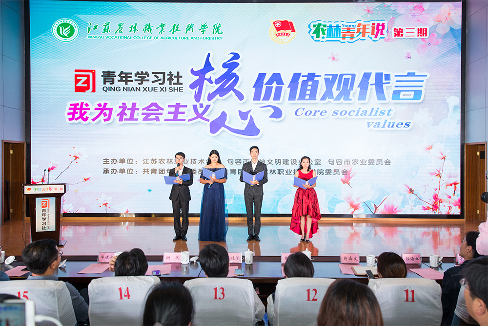 10月10日晚,“农林青年说”第三期“我为‘社会主义核心价值观’代言”主题演讲比赛在图书馆报告厅举办。句容市委宣传部副部长、文明办主任谢兵,句容市农委党委书记褚小明,团市委书记蒋嘉文,永利官网院长巫建华,学院党委委员、办公室主任毕德全以及相关职能部门负责人,各二级学院党总支副书记等出席活动。
