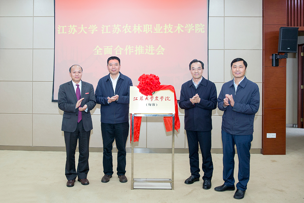 会上,两校签订全面合作协议,并为江苏大学农学院(句容)揭牌,颜晓红校长、俞卫东书记分别致辞,蔡恒副厅长、洪流副厅长分别讲话。