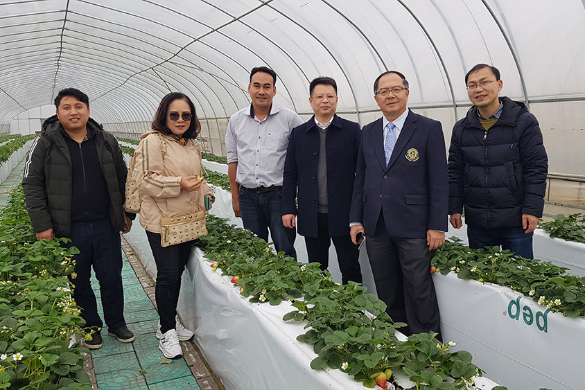 泰国农业大学纳龙柴教授一行还参观了江苏农博园和江苏茶博园两大实训基地,就草莓育种与繁殖进行深入的交流和讨论,对永利官网的设施设备、栽培技术、栽培成果给以充分肯定。