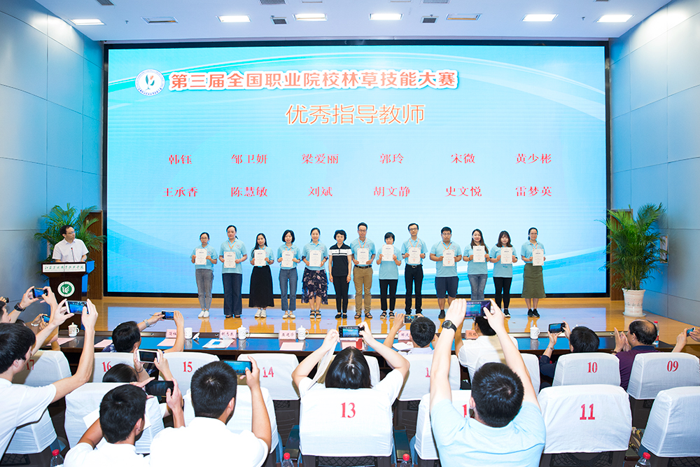国家林业和草原局人事司教育培训处邹庆浩处长宣布比赛成绩,出席大会的领导向获奖选手及优秀指导老师颁发了获奖证书。各赛项裁判长分别进行了技术点评。