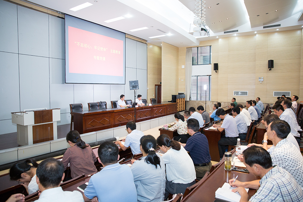 为深入贯彻党的十九大精神,提高党员政治素质,进一步坚定理想信念,深入开展“不忘初心、牢记使命”主题教育,9月23日下午,学院党委书记俞卫东讲授题为《认真学习党章 自觉维护党章权威》的专题辅导。学院全体中层以上党员干部、支部书记等100余人聆听了专题党课。党课前,俞卫东同志带领全体参会党员重温了入党誓词。专题活动由学院党委副书记、院长巫建华主持。