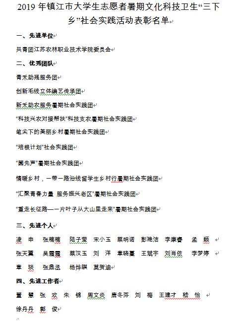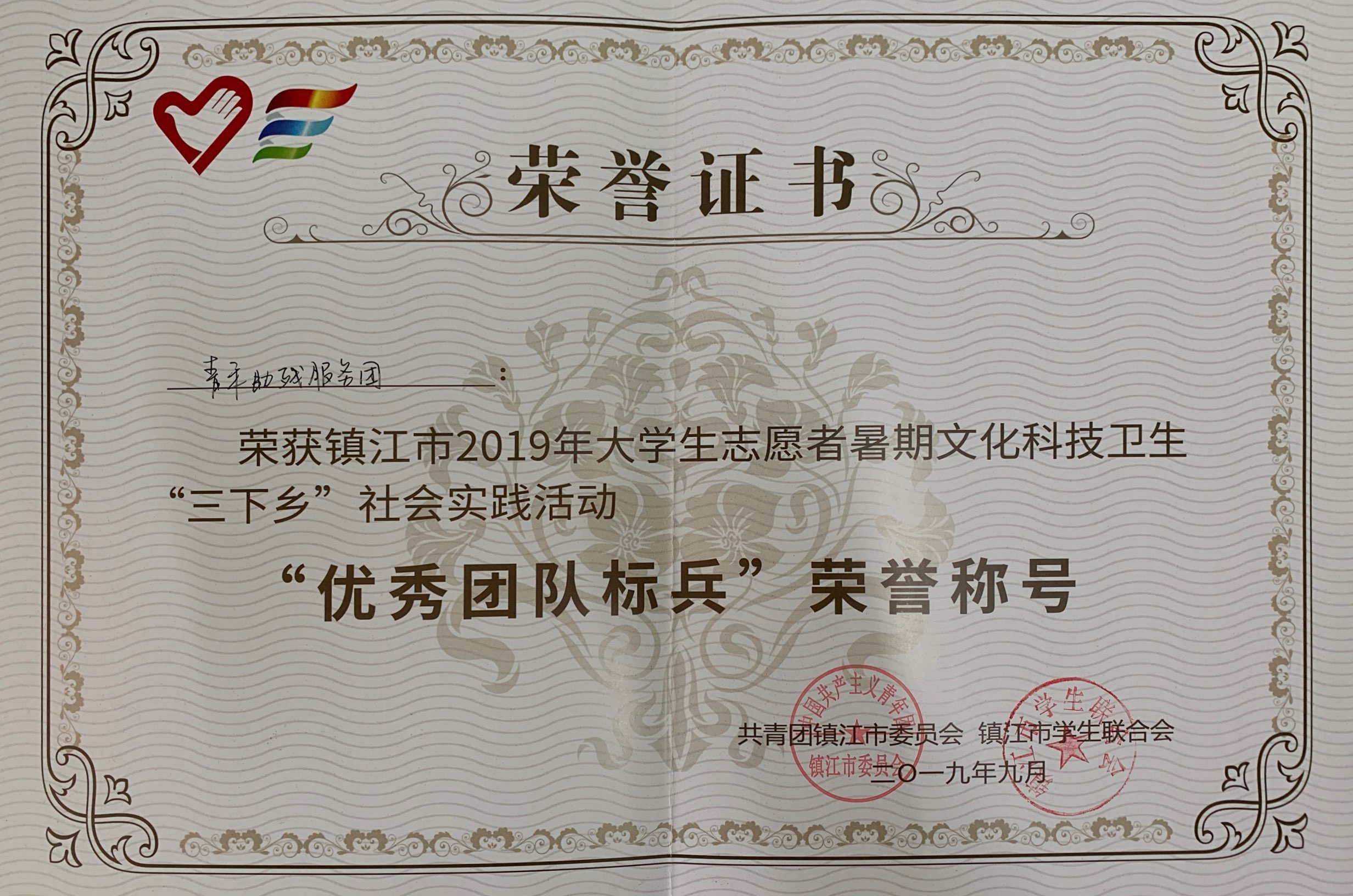 近日,镇江市大中专学生志愿者暑期文化科技卫生“三下乡”社会实践活动评选结果公布,永利官网团委荣获先进单位,“青禾助残服务团”获优秀团队标兵,“培根计划”暑期社会实践团等10支团队获优秀团队,王斌宇等20名同学获先进个人,唐冬芬等10名老师获先进工作者。