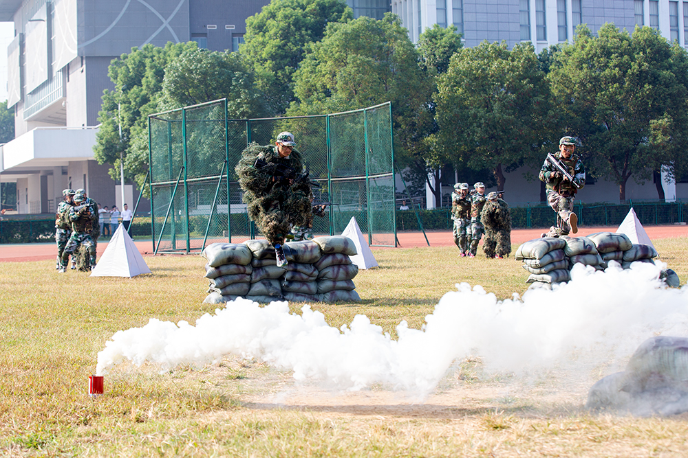 伴随着激扬的解放军进行曲,阅兵式、分列式顺序开始。巫建华院长在学院人武部部长管斌的陪同下,检阅了军训队伍。经过十一天的艰苦训练,分列式方阵的同学以端正统一的军容、整齐有力的步伐、铿锵有力的口号、英姿飒爽的精神风貌依次从主席台前走过,接受部队首长和学院领导的检阅,展示了农林学子的激情与风采。随后,汇报表演的方阵分别进行了格斗术、匕首操、特种战术表演。他们威武的军姿、昂扬的精神、整齐划一的动作赢得了现场观众的阵阵掌声与喝彩。