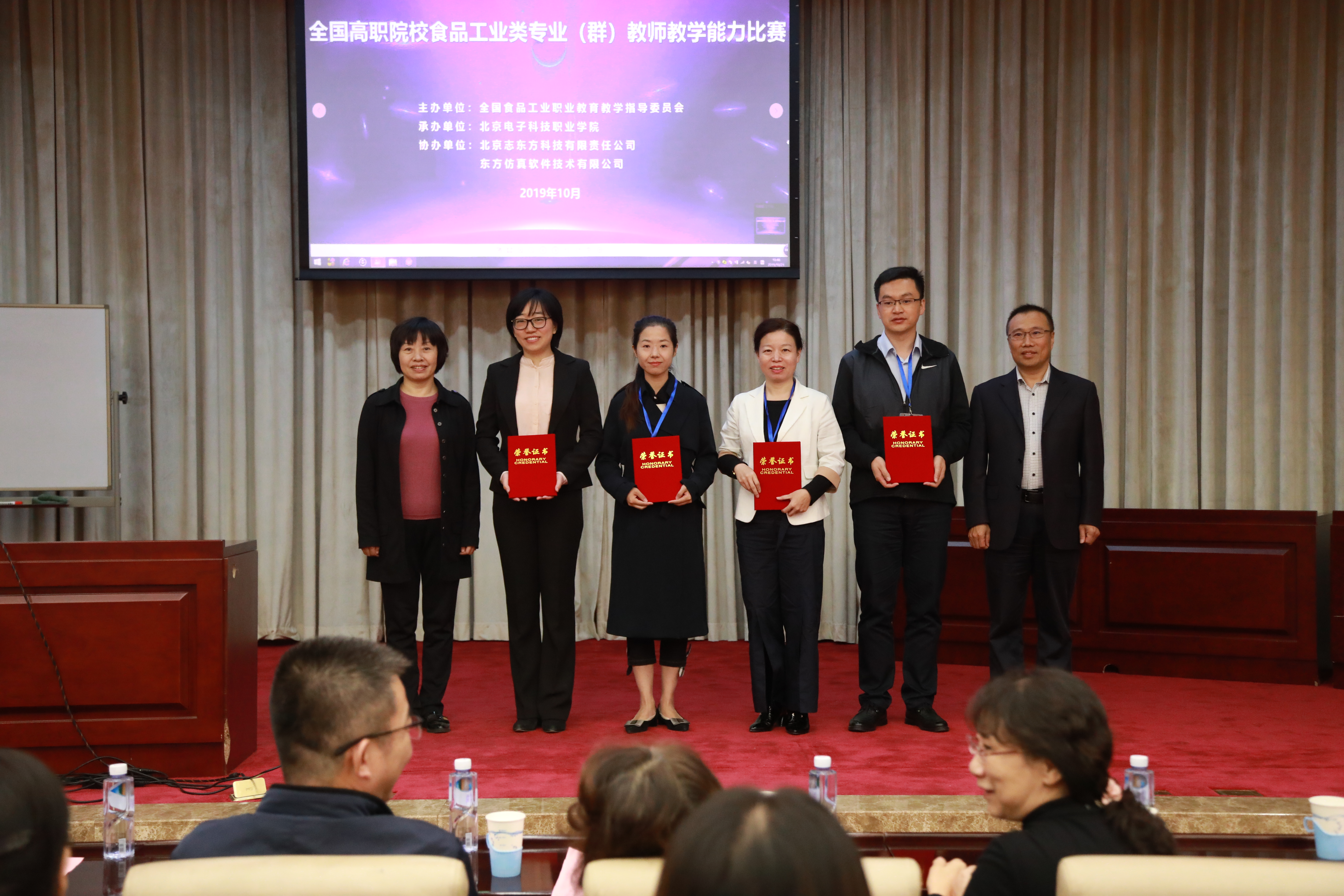 本次教师教学能力比赛由全国食品工业行业教育教学指导委员会举办,北京电子职业技术学院承办,此次大赛参赛院校是来自全国食品工业行业的34所高职院校,经过现场说课,模拟上课和回答问题三个阶段,评选出获奖作品。最后,团队作品作为优秀作品在现场进行了现场展示。
