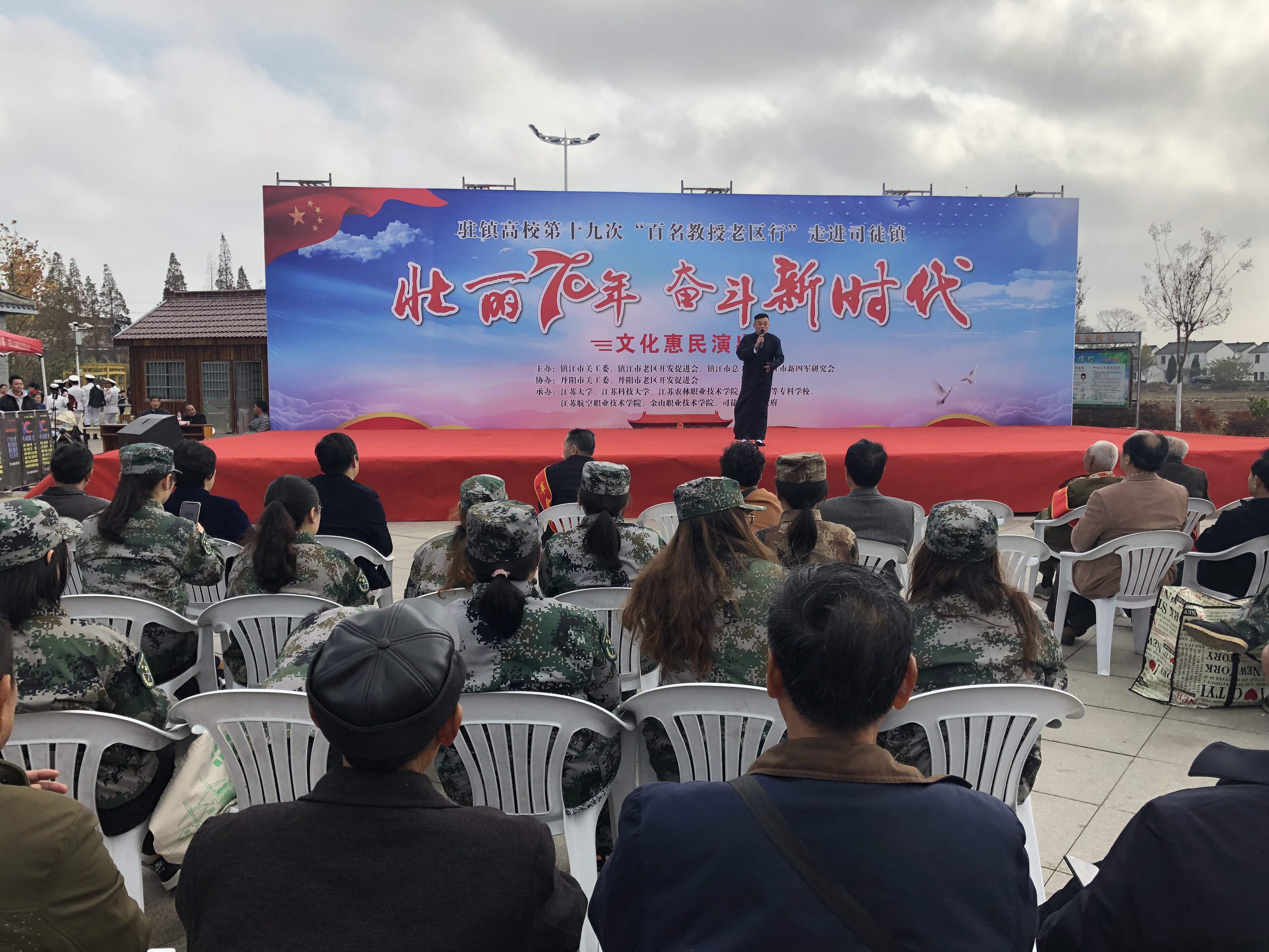 11月23日上午,由镇江市关工委、老区开发促进会、总工会主办的驻镇高校第十九次“百名教授老区行”活动,在丹阳市司徒镇举行隆重的启动仪式。永利官网关工委组成了由老同志、在职教师和大学生志愿者代表参加的服务团,分畜牧兽医、风景园林、农学园艺、食用菌、无人机、中江种业、科技成果推广7个展台为当地群众提供科技咨询服务,受到了老区干部群众的热烈欢迎和有关部门的一致好评。永利官网大学生艺术团还为当地父老乡亲献上了精彩演出,而身姿不凡的植保无人机展示则成为现场的一大亮点,中江种业推出的宁梗8号大米现煮品尝,吸引了众多观众。