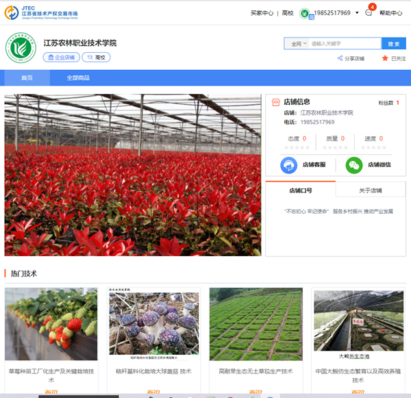 为加快建设和完善永利官网技术转移体系,推进科技成果转化和产业化。根据省高校科技发展中心的统一部署,经过一个多月的组织筹备,成功在江苏省技术产权交易市场上线“77779193永利集团技术产权转化平台”!首批上线项目是2019年9月从农学园艺、畜牧兽医、风景园林、信息工程、机电、茶食、经济与人文等二级学院征集的技术成果,主要包括草坪草、食用菌、草莓、水产等近30项主推技术。平台网址:http://jstec.com.cn/shop?id=201931900829006644