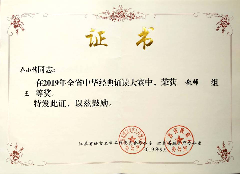 近日,省语委办、省教育厅办公室公布2019年全省中华经典诵写讲系列活动获奖名单,来自国际教育学院FAJAR ADJI LAKSANA的作品《满江红》获留学生组二等奖,LE THIHUONG GIANG的作品《雨巷》和MAI THI OANH的作品《再别康桥》获留学生组三等奖;经济与人文学院乔小倩老师的作品《致橡树》获教师组三等奖;风景园林学院居新、风景园林学院聂家慧、农学院园艺学院刘子源、茶与食品科技学院王雪菲的作品《诗意中国》获大学生组三等奖;